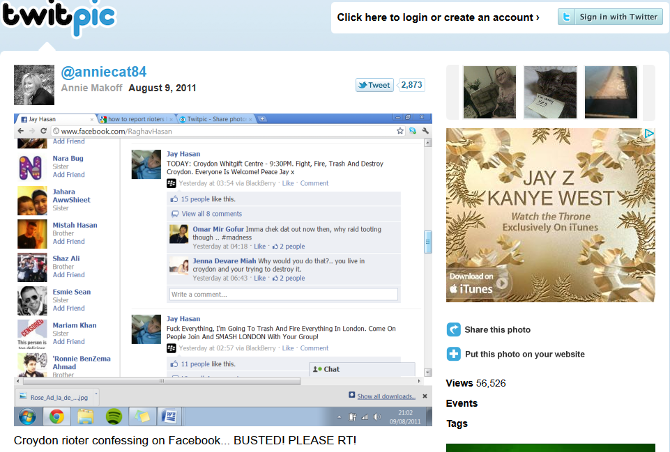 August 10, 2011 Croydon rioter confessing on Facebook… BUSTED! PLEASE RT! on Twitpic_1312969868123 Google versus Facebook: a battle for social consent Croydon rioter confessing on Facebook... BUSTED! PLEASE RT! on Twitpic_1312969868123